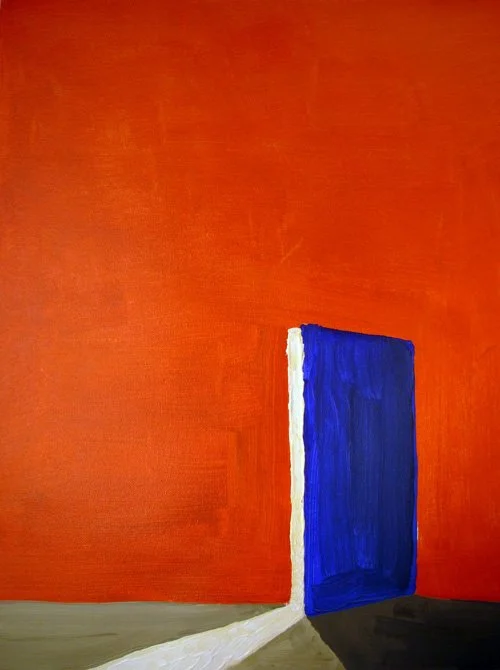Blue door on onrange background